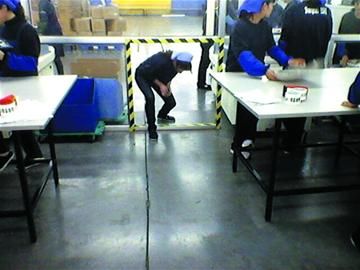 记者:是黑黄色的框圈起来的,员工每天都要“钻洞”吗?