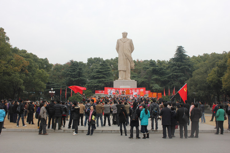 12月26日,来自全省各地的人民群众自发集结在湖南大学东方红广场纪念毛泽东同志诞辰118周年。活动还没开始,就有三三俩俩的警察、校管 人员、城管人员来试图驱赶聚集的人群。理由是集会没有申请、场地是湖南大学的、音响干扰教学等等,不一而足。人们不禁要问:平时成群结队的游客、参观者来此活动都经过申请了吗?这场地不是一直对外公共开放的吗?本广场离教学区有相当一段距离,音响声音有那么大干扰吗?不允许拍照,是谁给你的权利禁止别人拍照?群情激愤的纪念者一轰而上将他们驱逐了出去,这些不识时务的人灰溜溜的走掉了。
