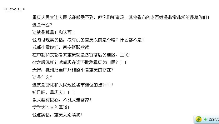看到此贴甚是鼓舞。楼主乃有立场的重庆人。吧主也是。真心顶你们