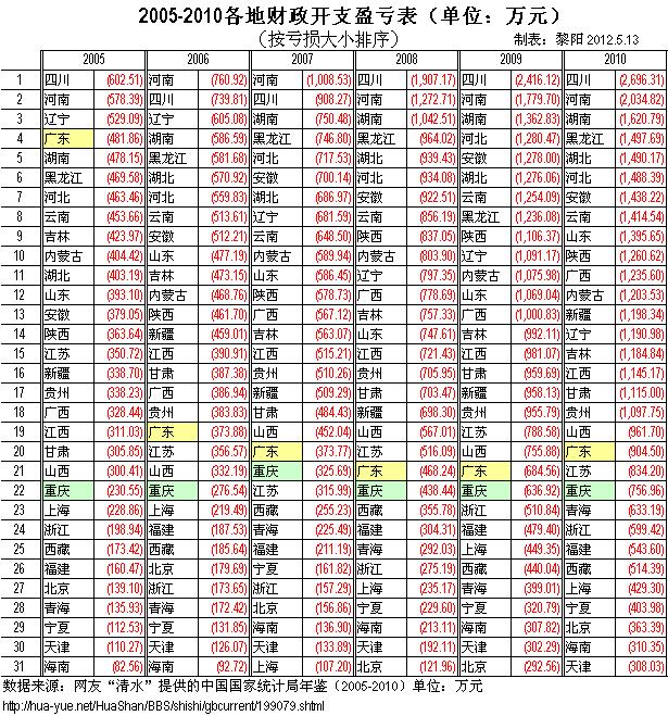 1.重庆这几年的财政赤字一直比广东少。要说“财政赤字、寅吃卯粮”,广东一直遥遥领先。