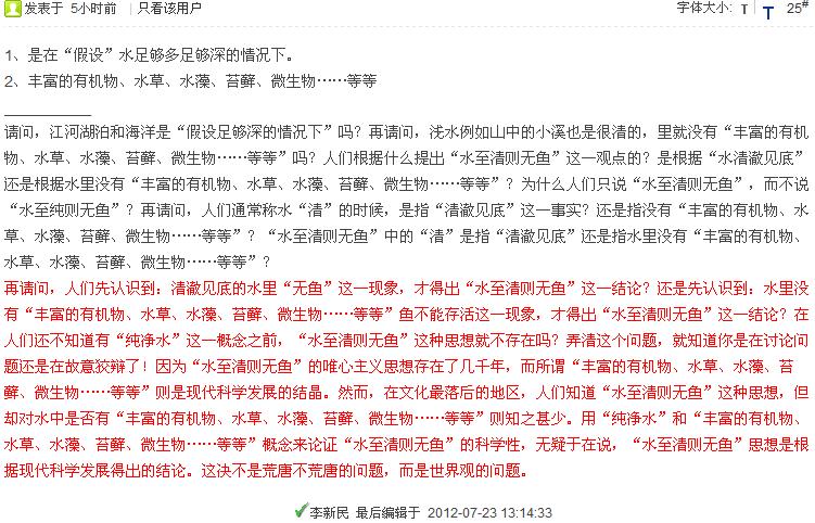 你5,6两楼都在反驳,说教一个问题,你的水清无鱼的理论.可笑的是,5楼唱的高调,在6楼被你自己否定掉了.