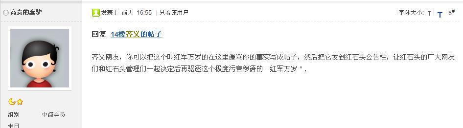这是网友高贵的蠢驴对14楼的网友齐义的回帖。