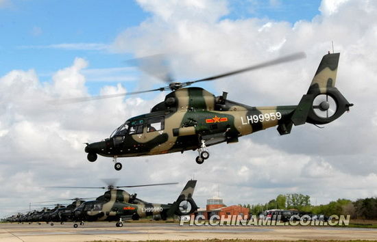 今天上午九点二十分去公司上班,看见蔚为‘壮观’的一幕。六架武装直升机成双编队、分左右队列、自东往西飞来,超低空不会高于300米。如果是非常时期老式的三八大盖即可进行威胁式的’射击‘,保准命中率极高。