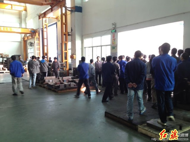 2013年1月28日,广东中山市坦洲镇,志和家电公司,全体员工举行罢工,抗议公司不发年终奖。29日,罢工工人与警察发生冲突,有工人被打伤。