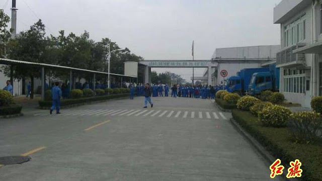 2013年1月28日下午,广州经济技术开发区,东海橡塑厂,全体员工发起罢工,抗议年终奖减少三分之一。晚上,防暴警察进入厂区戒备。