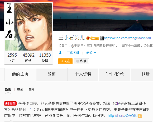 新浪微博的“王小石头”也他吧。经典不说人话打着红旗反红旗的假“毛派",舔脚维稳派。打喽啰保主子,佯装左派,制造分化,将西化派(包括追求西方民主的人)小喽啰作为敌人,阻止被统治阶级(无产阶级、小资产阶级、民族资产阶级)的暂时联合,是彻头彻尾的假革命,真反动,——黑旗网一类骗子人渣。