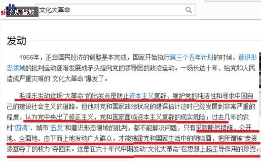 看看百度这些截图,本是以否定文G的姿态表述,但还是清楚的说出W革是向人民民主社会努力的一次实践。实践失败了,但是没有收藏这个失败,没有在失败的身躯上继续向成功的方向努力雕刻。