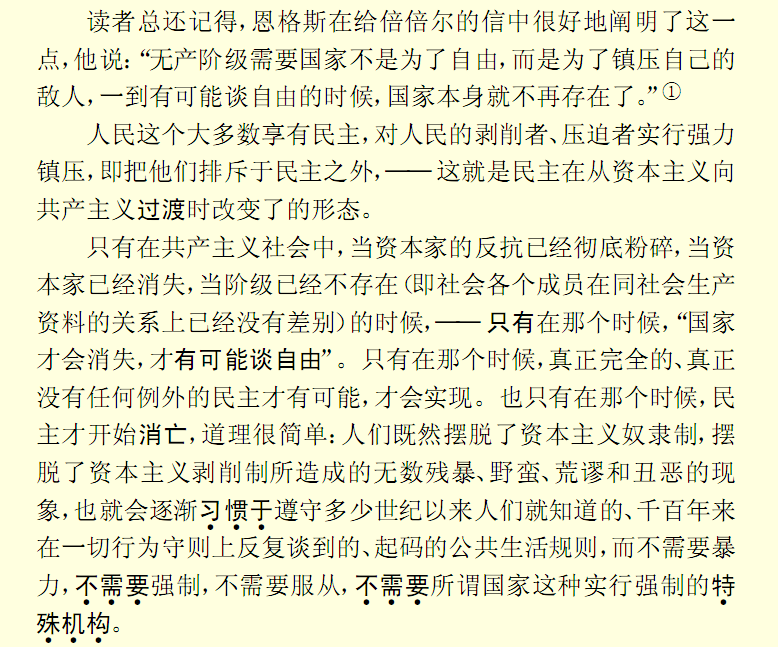 可以看出,无产阶级专政的历史时期是已经建立起来的共产主义生产方式与现存的资本主义生产方式彼此斗争,共产主义生产方式逐步去掉资本主义生产方式的时期。我所经历的苏东及中国发生的所谓的“社会主义”的生产方式、生产关系和社会关系依然是资本主义性质的生产方式、生产关系和社会关系。也就是说,当时无产阶级专政根本没有确立起来。