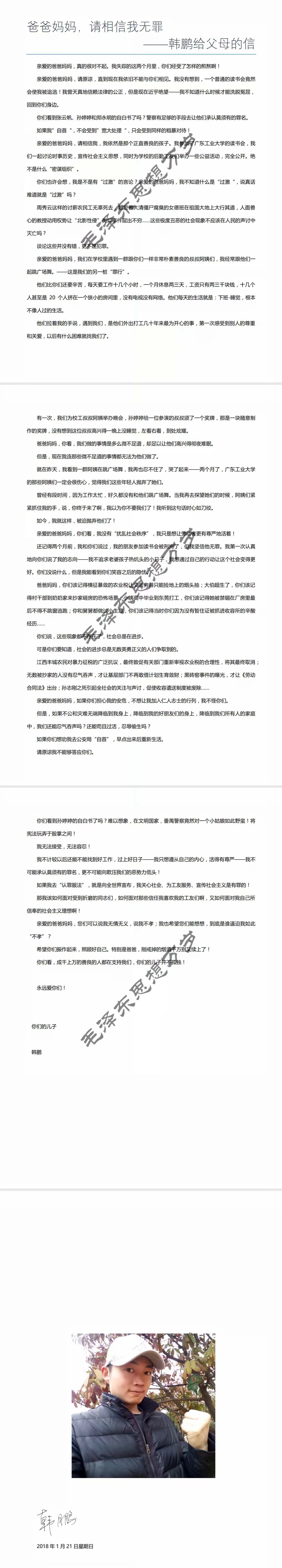 韩鹏:爸爸妈妈,请相信我无罪