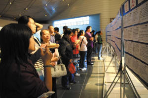 昨天招聘会现场十分热闹,信息栏前聚集了大批应聘者 王安卓/摄