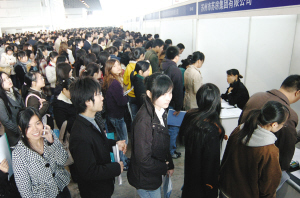 记者注意到,前往昆明三签企业管理公司招聘摊位前咨询、应聘的人多了不少,有的中年妇女想找一份兼职工作,而更多的应聘者是一些20多岁的女大学生。