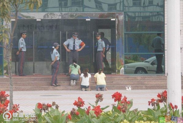 她们被罚跪的原因估计是迟到或者是上班时间带早点(不知道这个也能作为被罚跪的理由吗??????!!!!!!)