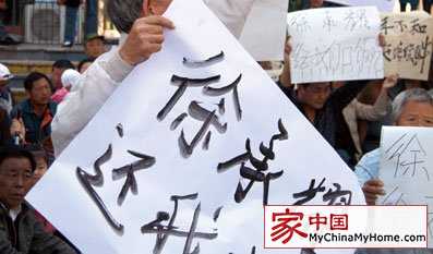 9月26日上午8时左右,位于经开区的烟台华明房地产开发有限公司(以下简称“华明”)门前,几百名来自东颗粒厂、西颗粒厂的业主手举着“强烈要求按照国家政策拆迁补偿”、“还我厂房、还我设备”、“徐承耀吐骨还钱”、“救救老人孩子”等各类维权标语集体下跪,要求与华明董事长徐承耀对话。