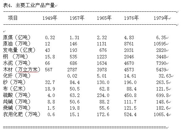 在工业方面,总产值增长172%。主要产品产量的增长幅度分别为:原煤110%,原油610%,发电量200%,钢70%,水泥190%,木材15%,化纤190%,纱51%,布40%,硫酸90%,纯碱30%,烧碱120%,农用化肥200%。