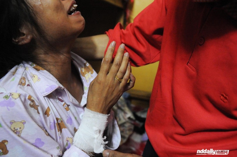 深圳宝安区西乡街道一间士多发生不幸事件,一位联防队员手持钢管、警棍闯进其中,一通乱砸后,对老板娘进行长达一个小时的毒打和强奸。她的丈夫则躲在几米外,不敢做声,眼睁睁看着妻子遭此横祸,一个小时后才悄悄报警。图为7日中午,西乡河东社区,杨武(化名)和妻子王娟(化名)绝望无助相拥而泣。作者:南都记者 徐文阁 摄[详细]