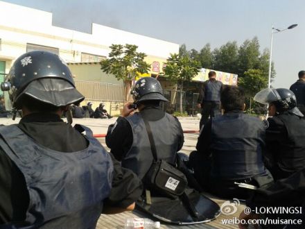 以下附图几张厂房后面着火图片。。。打架部分因警察干扰,不准拍,要是拍了被发现摔手机的!