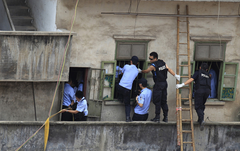 法警强行登上“钉子户”二楼,撬开门窗,进入屋内抓捕屋主。2011年11月17日上午9时许,广州五羊新城,法院强制执法,拆除杨箕村最后几栋“钉子户。南都记者陈辉