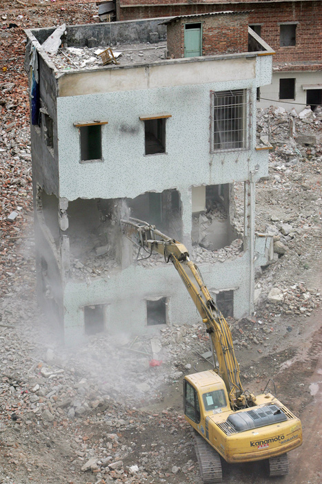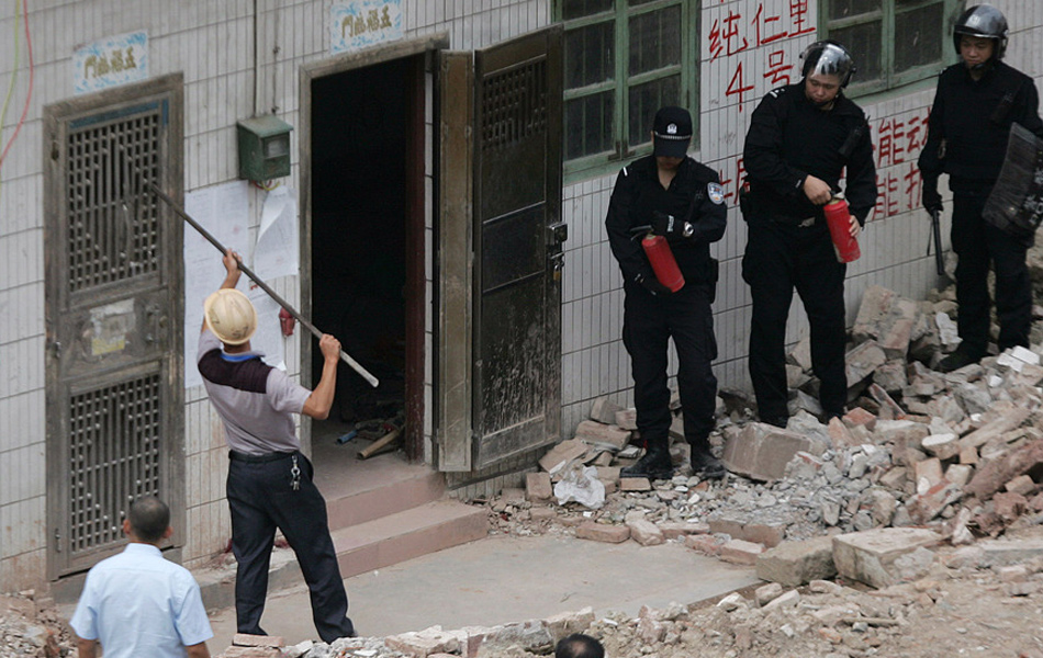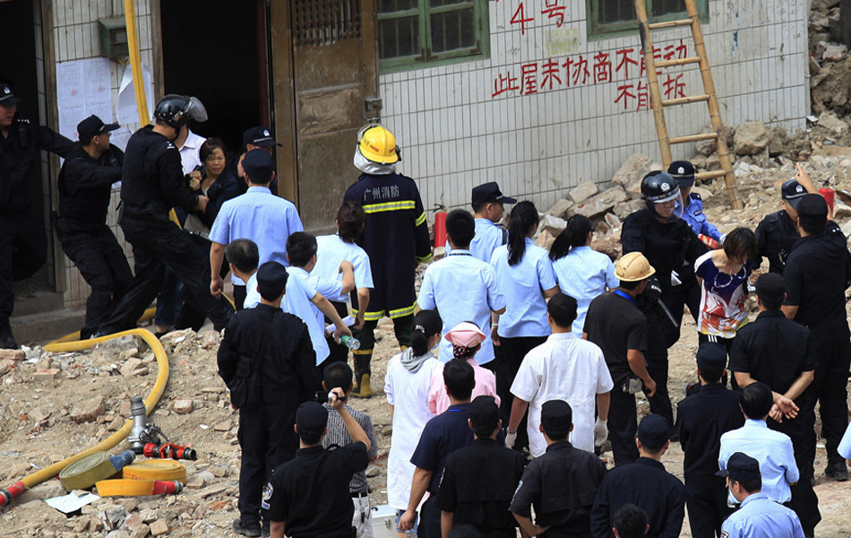 11月17日下午,杨箕村。拆迁队正在对钉子户进行拆迁。实习生 孙振飞 南都记者 冯宙锋 摄 11月17日下午,杨箕村。拆迁队正在对钉子户进行拆迁。实习生 孙振飞 南都记者 冯宙锋 摄