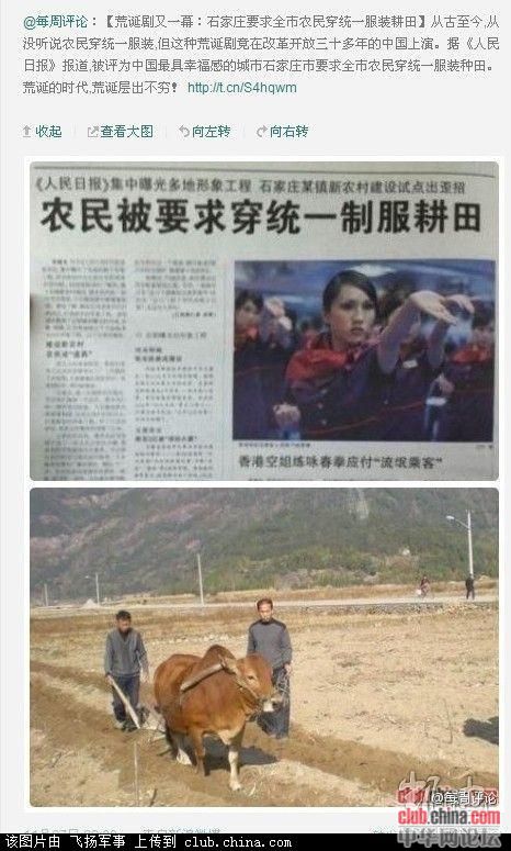 » 石家庄市要求全市农民穿统一服装种田