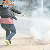 警方每次施放催淚彈,即有村民上前執起擲回。(本報汕頭傳真)