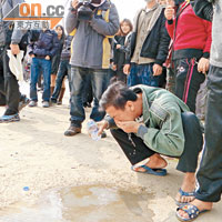 有村民早作準備,遇上催淚彈時即用樽裝水洗眼。(本報汕頭傳真)