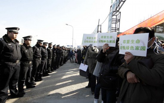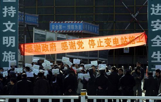 2月27日上午8时,山东青岛,200余名万科蓝山的业主聚集在楼盘旁边的变电站门前进行抗议。万科蓝山楼盘100米以内的地方将施建220千伏的大型变电站,因担心自己会受到辐射,业主自发聚集在变电站门前进行抗议。业主称,购房时开放商未告知此情况,开发商请专业人员进行解释,却也难以说服业主。青岛信访局某处长要求前来倾听官方答复的100余名业主按照《信访条例》选出5名代表进行对话。