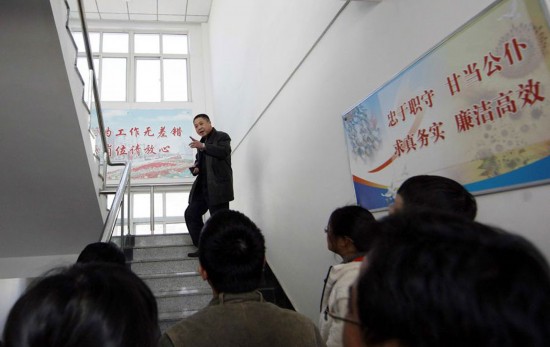 2月28日下午,山东青岛辽源路街道办事处内,青岛信访局某处长要求前来倾听官方答复的100余名业主按照《信访条例》选出5名代表进行对话。经过1个小时的交涉,5名小区业主自愿成为代表与青岛市供电局、规划局、环保局、万科蓝山负责人、信访局五个部门的工作人员进行交涉。