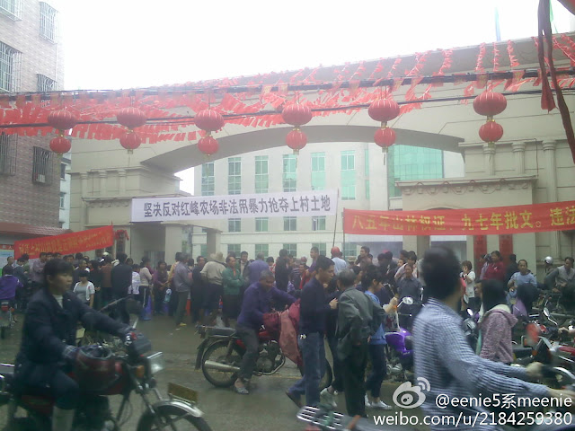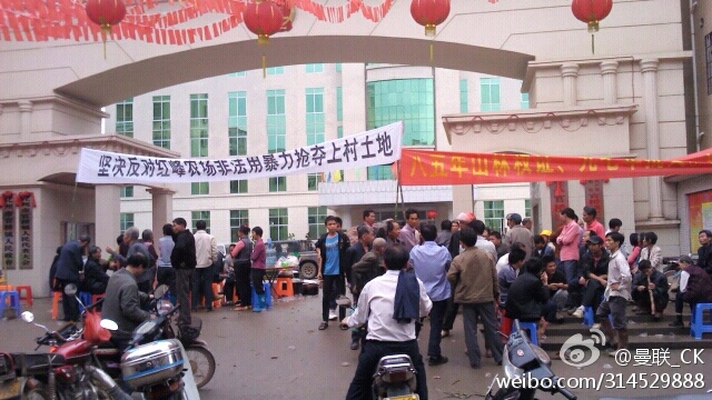 广东省化州市官桥镇,上村管理区及塘腰村与红锋农场的土地纠纷长期存在。2012年3月14日,双方爆发流血冲突,红锋农场人员打伤十几名村民,其人两人重伤昏迷。村民认为当局偏袒红锋农场。15日,数百名村民冒雨在官桥镇政府门前示威,要求政府严惩红锋和交还土地,还村民公道。到晚上,政府仍无回应,于是村民在镇政府大门前做饭开餐。16日,村民继续堵塞政府大门。下午,当局出动防暴警察驱逐村民。