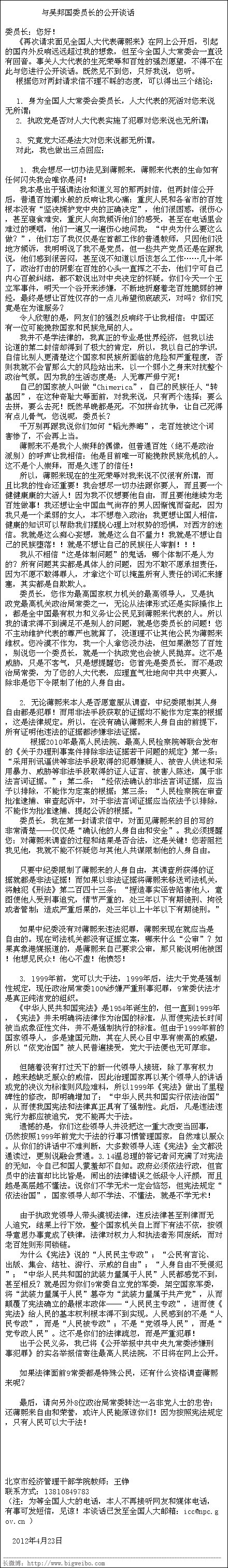 铮铮铁骨,侠义心肠,不学法的却拿起了法律武器,而学法的却无声音,中国怎么了?《重庆日报》说3300万重庆人坚决拥护中央的决定(连不会说话的婴儿也被拥护了),这是大是大非,可不是儿戏,更不是文学创作的可虚构,这么大的谎言竟然可以说出来,谁又该为此负责,倘使广大的被拥护者站出来大呐喊:他们说的全是假话,我们没有拥护,《重庆日报》怎么下台?