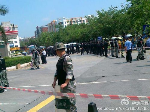 ---------抗议工厂搬迁不给合理补偿,大批警察戒备