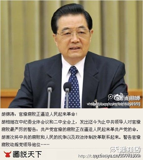 这个问题是天大的问题。那样的表达就把共产党整体和腐败做了绑定。那他就不但不是中国共产党的领导人,而是中国共产党的敌人的领导人了。