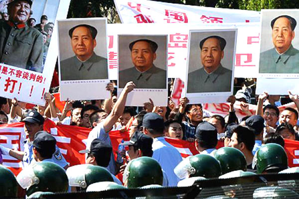 在游行中出现毛泽东头像,同样反映了复杂的政治进程。毫无疑问,举毛像是表达对当前中共领导层不满的流行方式。但是毛主义的回潮并不一定意味着支持左翼或者社会主义思想。很多人把对毛的支持联系到呼吁对日宣战。