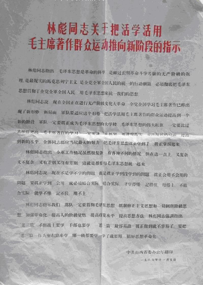 虽然“活学活用毛泽东思想”是林彪从运动中选择出来的,它来源于群众的创造,但从林彪之口说出了,就错了?