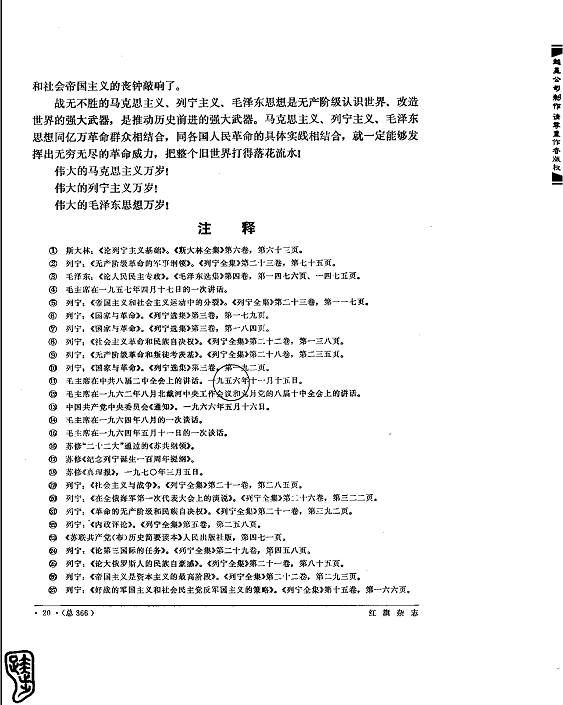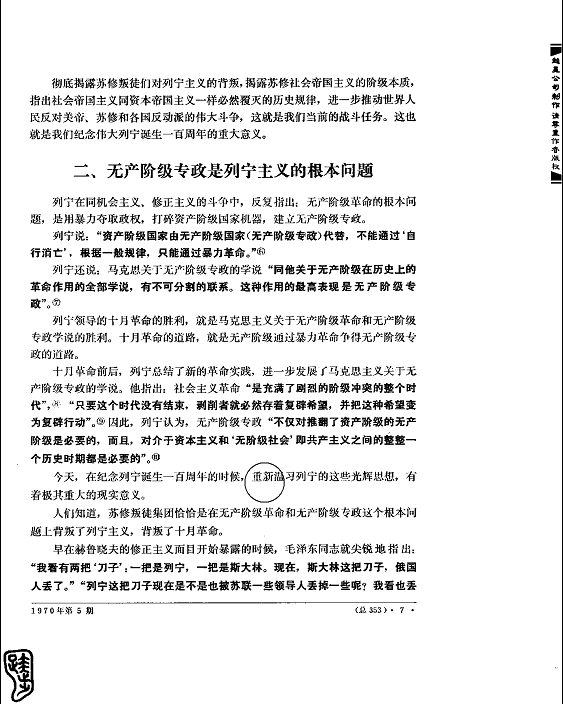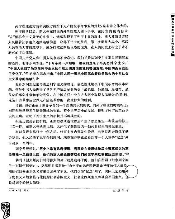 “‘革命’的先生们,且慢着高兴!按照你们的逻辑推理,如果把资产阶级自由派看作美狗汉奸,那么蒋介石何尝不把毛泽东看作“苏狗汉奸”呢?俄国沙皇何尝不把列宁看作“德狗俄奸”呢?这样恰恰就是你们所要的口口声声的“革命”么?无产阶级决不需要这种“革命”,也不会在你们“保卫祖国”的喧嚣中,随着你们的脚步而“革命”,更不会随着你们出卖无产阶级革命利益,支持官僚资产阶级镇压群众运动中,实现你们所谓阶级的“独立性”和“领导权”而起舞。”