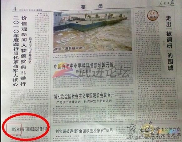 劲爆!今天人民日报第4版左下角,温总理的名字写错为温家室 17人被处理