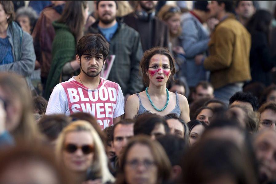 10月15日,全球82个国家的示威者在951座城市发起示威,“占领运动”迎来第一次全球行动。图为塞尔维亚首都贝尔格莱德。