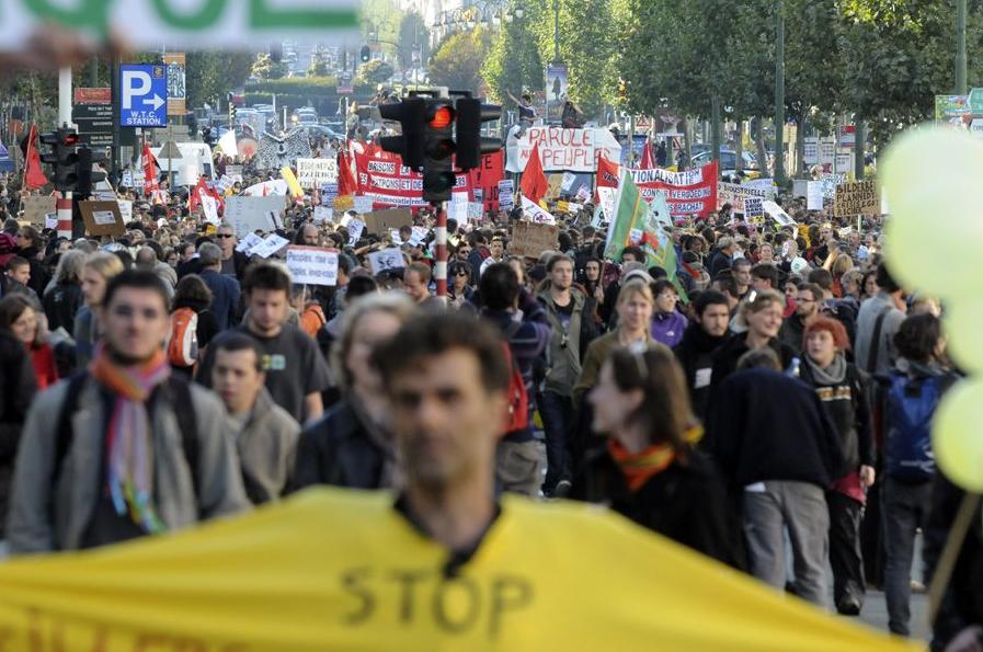 10月15日,全球82个国家的示威者在951座城市发起示威,“占领运动”迎来第一次全球行动。图为法国巴黎。
