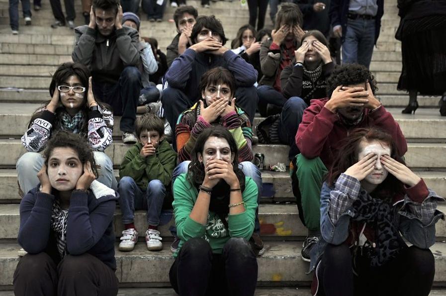 10月15日,全球82个国家的示威者在951座城市发起示威,“占领运动”迎来第一次全球行动。图为希腊雅典。
