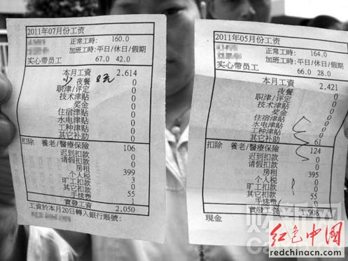 工人将加班视为“安抚”,是因为如果按每天8小时工作制,他们一个月的收入是1320元,这是深圳市的最低工资标准,除去三险一金等,每个月到手的钱不到1100元。但如果每月加班80小时,收入大约为2000元,如果加班100小时,则能拿到约2400元。