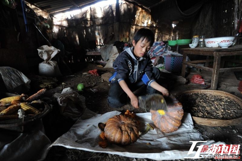 红坡头,放学回家做饭的孩子,他家一年大部分里的菜都只能有瓜。黄兴能 摄