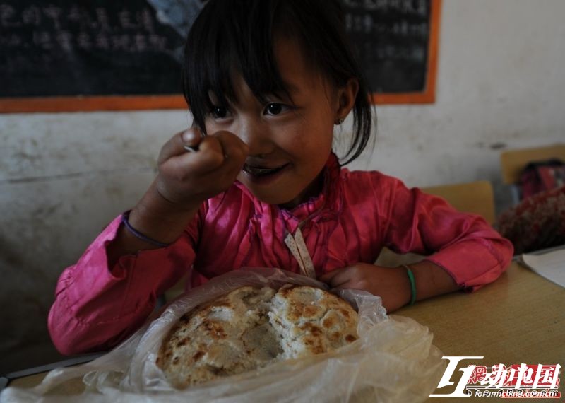 平头山道明小学,一个吃着干硬的玉米饼的孩子。黄兴能 摄