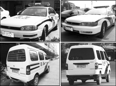 11月25日,广西桂林兴安县交警将2辆车牌同为“桂CD176警”的警车扣进了修理厂。此前,兴安县还发现4辆车牌为“桂HD022警”的司法警车(上图),车型分别为本田、丰田、长安之星和五菱之光,还有2辆挂“桂HD021警”同号司法警车,车型分别为三菱越野车和别克小车。桂林市交警支队已督促涉及到有套牌警车的各县交警大队,严格处理,并将处理情况上报到桂林市交警支队。