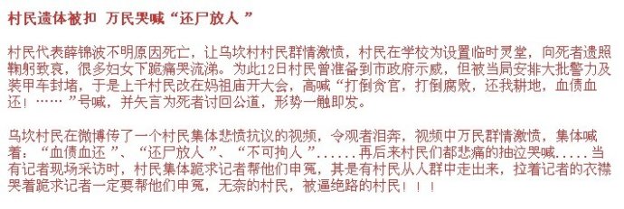 乌坎农民的伟大斗争是毛主席领导的人民大革命的继续!这个革命被邓小平反革命修正主义中断了三十多年,现在又到了兴起的历史时期!毛主席虽然不在了,但是毛泽东思想还在!毛主席的继续革命思想还在!坚持斗争,最后胜利一定属于乌坎人民!
