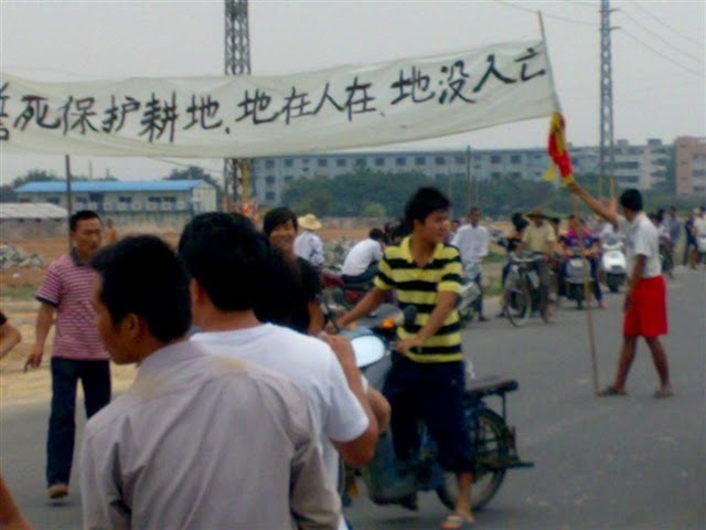 乌坎村的抗争还未平息之际,附近的龙头村也效仿起义。逾千名龙头村村民周二将开发商非法占用的农民土地围墙全部拆除,并高举横幅抗议官员私自买卖土地。当地村民反映,陆丰市贪官太多,人民都被逼出来起义。(冯日遥报道)