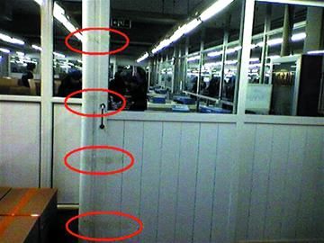 记者:是黑黄色的框圈起来的,员工每天都要“钻洞”吗?