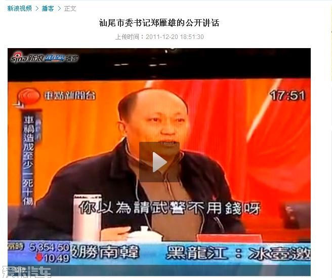 汕尾市书记郑雁雄:外媒信得过?母猪会上树!政府权力一天比一天小,手段一天比一天少,责任一天比一天大,老百姓一天比一天胃口高,一天比一天聪明,一天比一天难管。像这样负责任的政府,你不指望,你指望国外几个烂媒体、烂报纸、烂网站,好坏都颠倒了。
