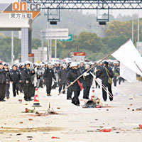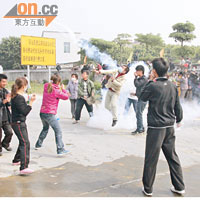 警方每次施放催淚彈,即有村民上前執起擲回。(本報汕頭傳真)