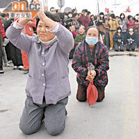 有村婦向警方跪拜,實質是求神明保佑。(本報汕頭傳真)