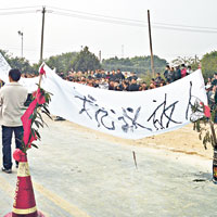 警員拆走現場的抗議標語。(本報汕頭傳真)