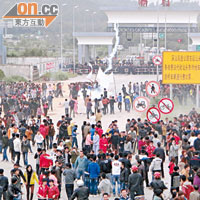 民眾繼續示威,警方不斷向人群發射催淚彈。(本報汕頭傳真)